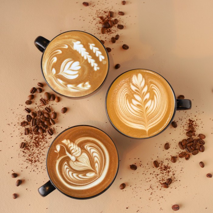 يقدم بأنواع مختلفة من البُن : مخرج ١٣ / من الجافا والقواتيمالا واثيوبيا تمتاز بحلاوة عسلية وقوام كريمي ونكهة الفاكهة المجففةو الكاكاو الممزوج بالحطب والعود .شلشلي / من اثيوبيا ، تمتاز بقوام ناعم وإيحاءات الكرز، والخوخ، بحمضية متزنة وعطرية الياسمين